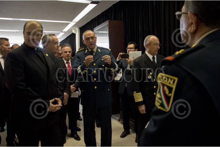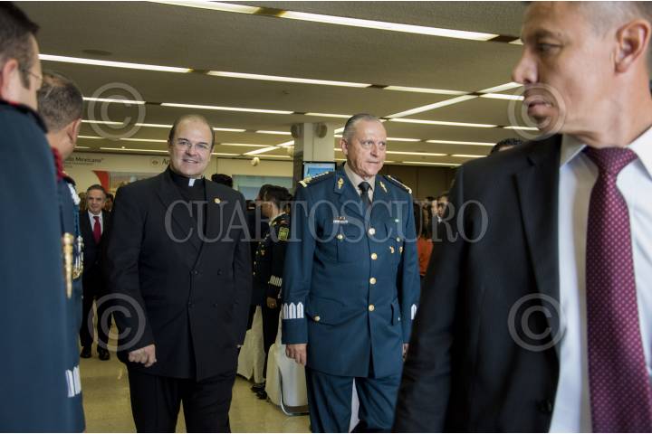 CIUDAD DE MÉXICO, 18OCTUBRE2016.- Salvador Cienfuegos Zepeda, secretario de la Defensa Nacional; Vidal Francisco Soberón Sanz, secretario de Marina, y el padre Cipriano Sánchez, rector de la Universidad Anáhuac, encabezaron la inauguración del Seminario de la Defensa Nacional y el Derecho Internacional Humanitario, en las inmediaciones de dicha universidad. el secretario de la Defensa Nacional destacó que el ejército ha sufrido un desgaste debido a que hay tareas pendientes por atender. FOTO: GALO CAÑAS /CUARTOSCURO.COM