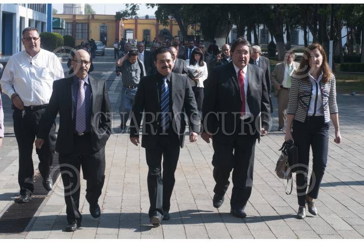 CHAPINGO, ESTADO DE MÉXICO, 08ABRIL2013.- Carlos Alberto Villaseñor, rector de la Universidad Autónoma Chapingo; Eladio Cornejo, rector de la Universidad Autónoma Agraria Antonio Narro y la doctora Nuria Urquia, representante de la FAO en México, durante su llegada a la inauguración del Congreso Nacional de Políticas Públicas para el Campo, Seguridad y Soberanía Alimentaria, evento que durará dos días en el que se trataran temas del sector del campo mexicano para el Plan Nacional de Desarrollo 2013-2018, organizado por la Universidad Autónoma de Chapingo. FOTO: DIEGO SIMÓN SÁNCHEZ /CUARTOSCURO.COM