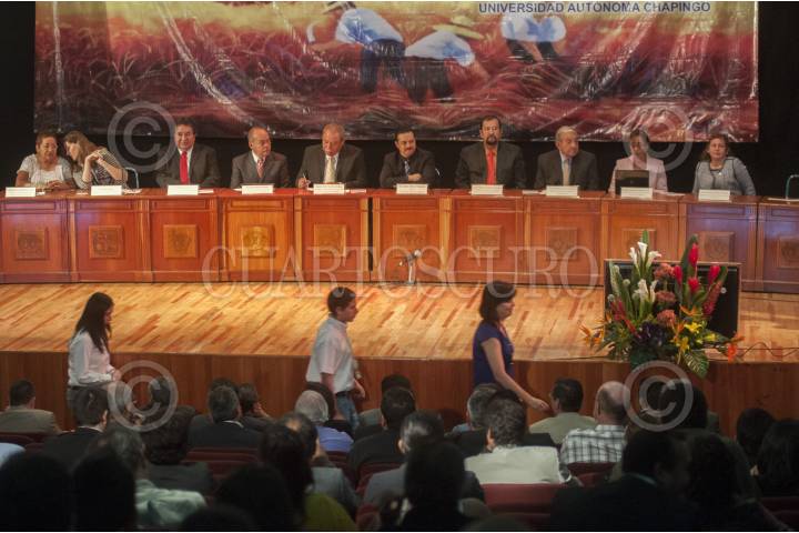 CHAPINGO, ESTADO DE MÉXICO, 08ABRIL2013.- La Universidad Autónoma de Chapingo organizó el Congreso Nacional de Políticas Públicas para el Campo, Seguridad y Soberanía Alimentaria, evento que durará dos días en el que se trataran temas del sector del campo mexicano para el Plan Nacional de Desarrollo 2013-2018. El congreso fue inaugurado por la diputada Gloria Bautista Cuevas, presidente de la comisión de Asuntos Alimentarios; la doctora Nuria Urquia, representante de la FAO en México; Eladio Cornejo, rector de la Universidad Autónoma Agraria Antonio Narro; Jaime Segura Lazcano, director general de Producción Rural Sustentable en Zonas Prioritarias; el senador Fidel Demédicis Hidalgo, presidente de la Comisión de desarrollo rural; Carlos Alberto Villaseñor, rector de la Universidad Autónoma Chapingo; senador Manuel Humberto Cota, presidente de la comisión de Agricultura y Ganadería; Jesús Moncada, director general del Colegio de Postgraduados y la senadora Luisa María Calderón, secretaria de la Comisión de Desarrollo Rural. FOTO: DIEGO SIMÓN SÁNCHEZ /CUARTOSCURO.COM