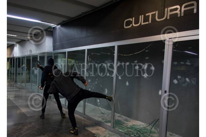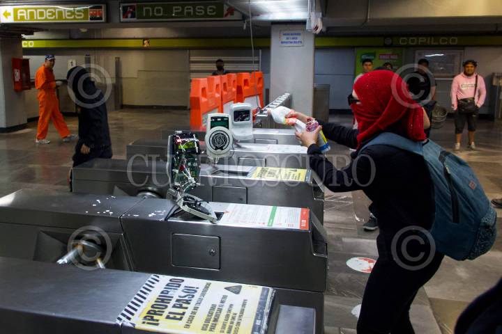 Estudiantes de la UNAM, durante protestas dentro del metro por el retiro de becas.