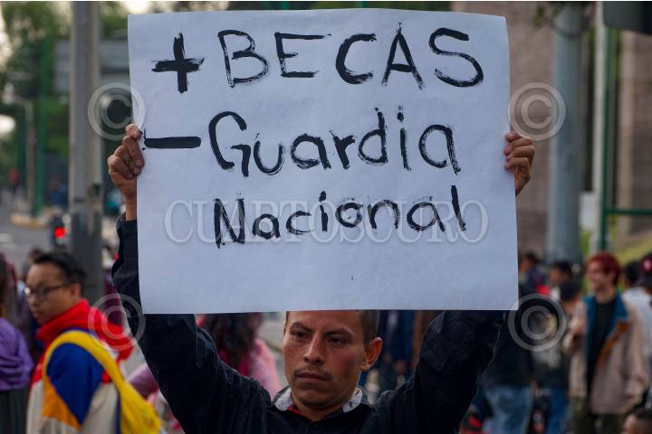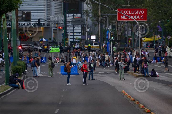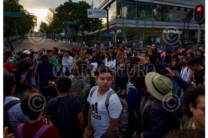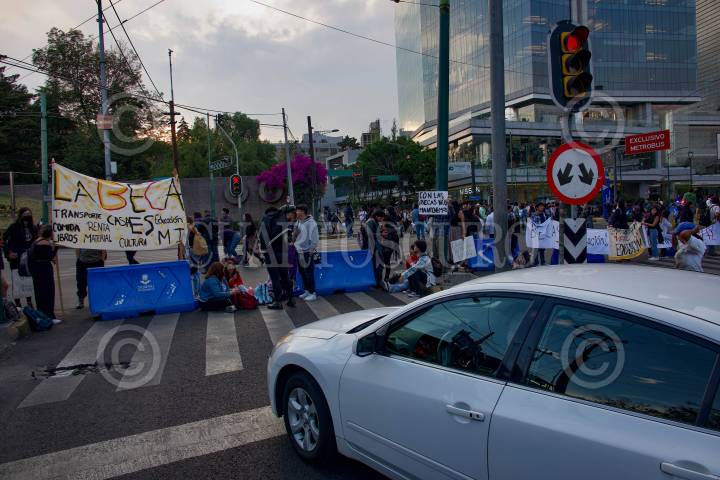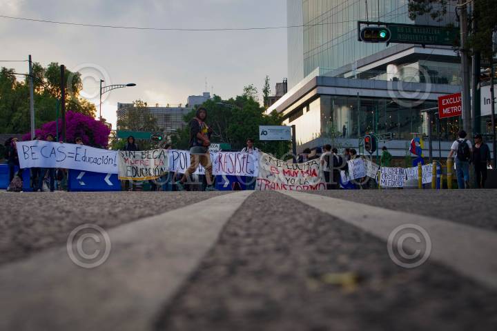 Estudiantes de la UNAM, durante bloqueo en Insurgentes Sur y Eje 10 Sur, por el retiro de becas.