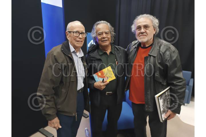 SAN LUIS POTOSÍ, SAN LUIS POTOSÍ, 01MARZO2025.- En el marco de la celebración de los 40 años de la Facultad de Ciencias de la Comunicación de la Universidad Autónoma de San Luis, el fotoperiodista y fundador de la Agencia Cuartoscuro Pedro Valtierra Ruvalcaba, dictó una conferencia titulada “Reflexiones sobre fotoperiodismo”. Estuvieron presentes el fotógrafo Javier Vallejo Coronel y Fernando Betancourt. FOTO: MARCELO PALACIO/CUARTOSCURO.COM