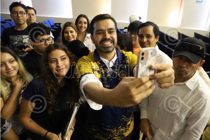 MÉRIDA, YUCATÁN, 13MAYO2024.- Esta mañana el candidato a la Presidencia de la República, Jorge Álvarez Máynez del partido Movimiento Ciudadano, sostuvo un encuentro con estudiantes de la Universidad Autónoma de Yucatán, UADY, en la ciudad de Mérida. Esta es la primera visita que realiza al estado de Yucatán, como candidato. FOTOS MARTÍN ZETINA/CUARTOSCURO.COM