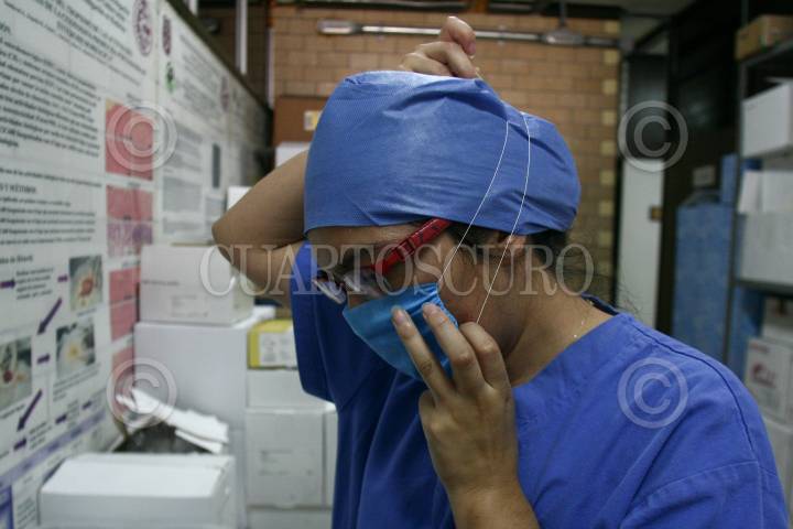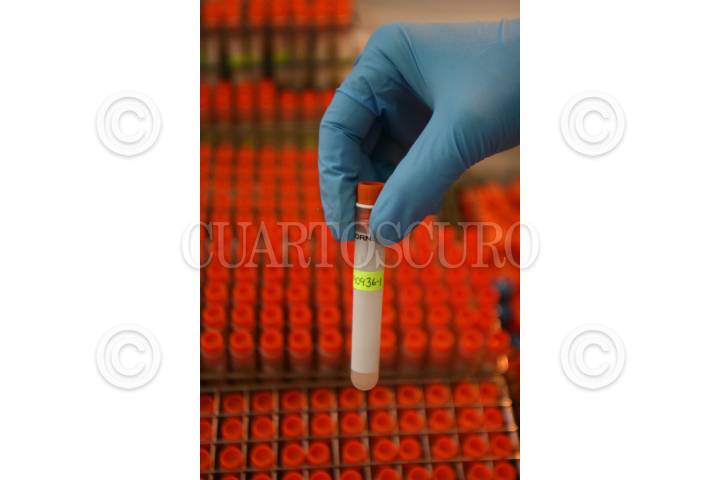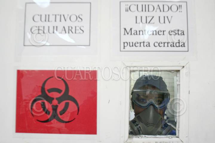 MÉXICO, D.F., 09OCTUBRE2009.- Investigadores del Laboratorio de Conservación de la Escuela Superior de Medicina del Instituto Politécnico Nacional trabajan en la exploración y análisis del virus AH1N1. Para acceder a este lugar existe un estricto control de sanidad: batas, cofias, guantes, cubrebocas y zapatos deben de ser esterilizados. Cuentan con robots, campanas de bioseguridad y escáner digital para la detección de los virus AH1N1 y H5. Los laboratoristas reciben muestras en tubos de transporte enviados por hospitales de todo el país, las cuales son colocadas en refrigeradores y posteriormente en tubos criovirales y gradillas para someterlos al análisis. El proceso de escaneo tarda alrededor de tres horas. Las pruebas son proyectadas en una computadora que analiza el material genético para definir si la persona está infectada. Todo el material empleado en el muestreo y análisis se utiliza sólo una vez y es desechado en bolsas de bioseguridad. El doctor Héctor Manuel Zepeda López, encargado del laboratorio, lleva diariamente el registro de cada caso y realiza gráficas sobre la reacción del virus, esta información es estudiada por un grupo de especialistas en el tema. FOTO: SAÚL LÓPEZ/CUARTOSCURO.COM