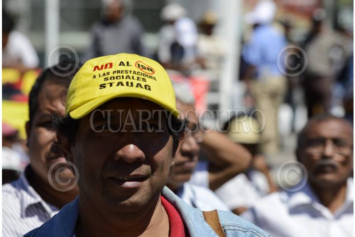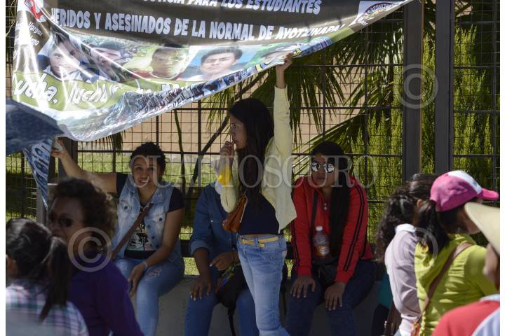CHILPANCINGO, GUERRERO, 11FEBRERO2016.-Trabajadores del Sindicato de Trabajadores Académicos de la Universidad Autónoma de Guerrero (STAUAG) y del Sindicato de Trabajadores Técnicos, Administrativos y de Intendencia al servicio de la UAGro, marcharon para protestar por la aplicación del cobreo del ISR a las prestaciones y exigieron la aparición con vida de los 43 jóvenes desaparecidos en Iguala. Los inconformes marcharon de la Alameda Granados Maldonado, ubicada en avenida Juárez, hacia el Palacio de Gobierno e hicieron una parada en el Congreso local. FOTO: JOSÉ I. HERNÁNDEZ /CUARTOSCURO.COM