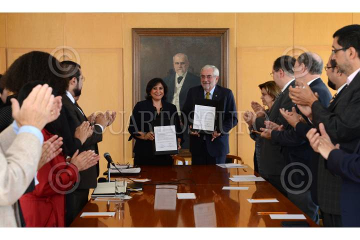 CIUDAD DE MÉXICO, 23SEPTIEMBRE2019.- Enrique Graue Wiechers, Rector de UNAM y Irma Eréndira Sandoval Ballesteros, encabezaron la firma del convenio para combatir la corrupción. Con el objetivo de realizar programas y acciones encaminadas al desarrollo y fortalecimiento de competencias, capacidades y habilidades de los servidores públicos que forman parte de las instituciones. FOTO: UNAM /CUARTOSCURO.COM