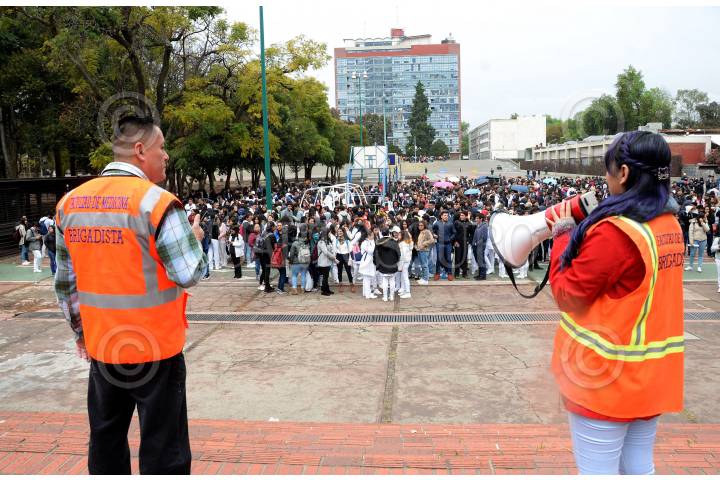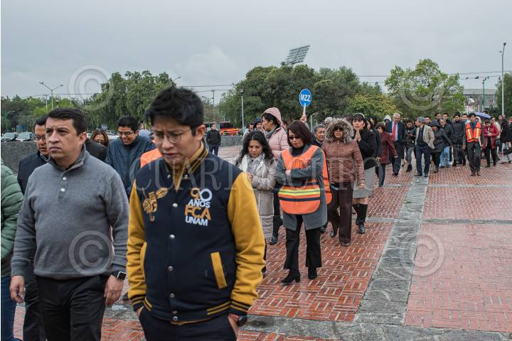 Estudiantes de la Universidad Autónoma de México, durante el primer macrosimulacro en Ciudad Universitaria.