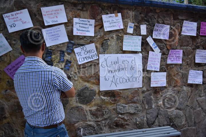 Alumnas de la UAGro colocaron un tendedero de denuncias dentro de la escuela en el que hacen señalamientos directos en contra de los profesores.
