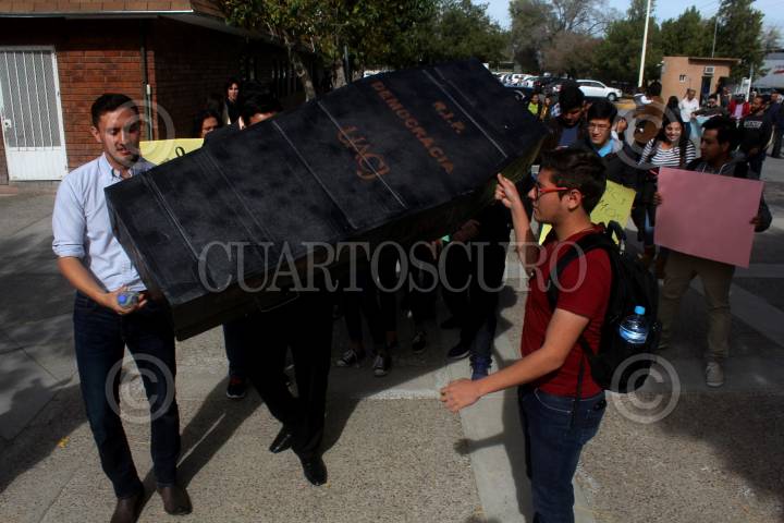 CIUDAD JUÀREZ, CHIHUAHUA, 21NOVIEMBRE2017.- Comunidad estudiantil de la Universidad Autónoma de Ciudad Juárez, protestaron contra el pasado proceso electoral, donde aseguran fueron elegidos al parecer mediante graves irregularidades, los consejeros universitarios y técnicos FOTO: NACHO RUIZ /CUARTOSCURO.COM