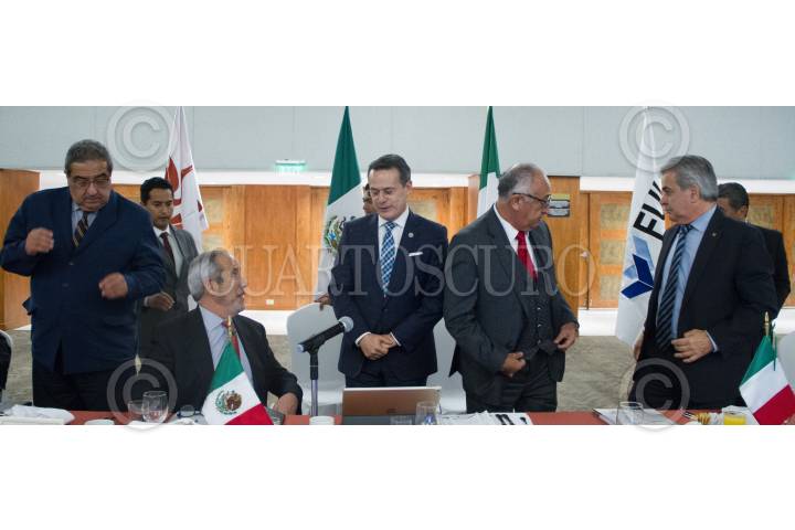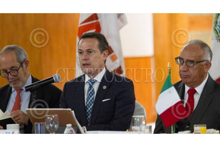 CIUDAD DE MÉXICO, 15AGOSTO2019.- Esta mañana en un conocido hotel de la Ciudad, se dieron detalles de la Trigésima segunda Feria Universitaria del Libro, que convoca la Universidad de Hidalgo, representado por el rector Adolfo Pontigo, le acompañan Marco Antonio Alfaro y Ángel Toledano. Como invitado especial estará el cineasta Francis Ford Coppola y presentaran sus películas más representativas. FOTO: VICTORIA VALTIERRA /CUARTOSCURO.COM