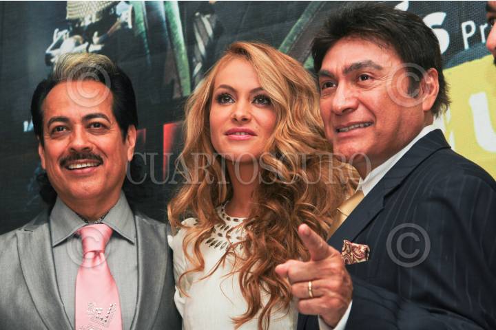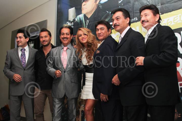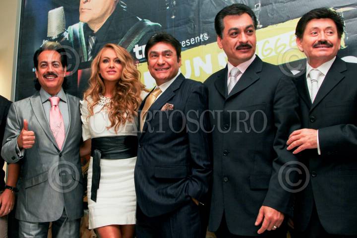 MÉXICO, D.F., 19MAYO2011.- El grupo musical Los Tigres del Norte, en compañía de la cantante Paulina Rubio, realizaron una sesión de fotos ante los medios de comunicación luego de la conferencia que realizaron para dar los pormenores del MTV Unplugged que realizaron a dueto. FOTO: ENRIQUE ORDÓÑEZ/CUARTOSCURO.COM