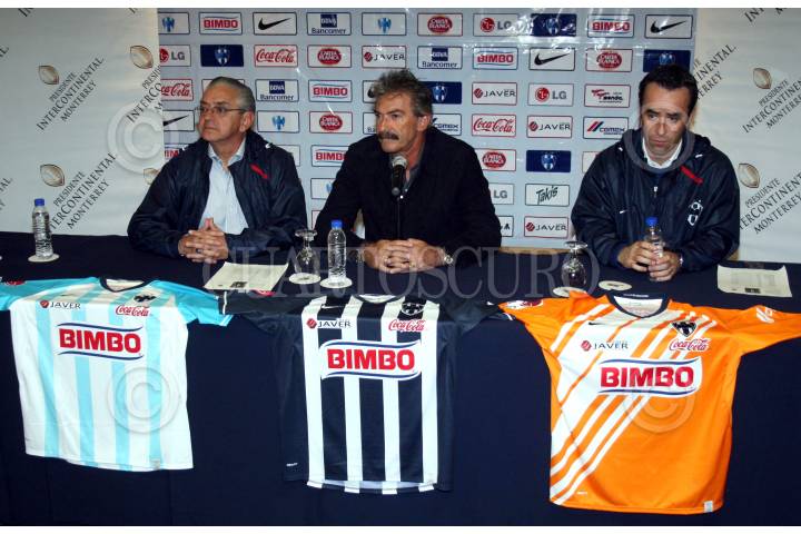 MONTERREY, NUEVO LEON 13ENERO2008.- El argentino Ricardo Antonio LaVolpe fué presentado como el nuevo DT, del club Rayados de Monterrey para el torneo de clausura que comienza la próxima semana, en rueda de prensa estuvo acompañado del presidente del club, Jorge Urdiales y el Vicepresidente Luis Miguel Salvador. FOTO: PEDRO KRISTIAN LOPEZ/CUARTOSCURO.COM