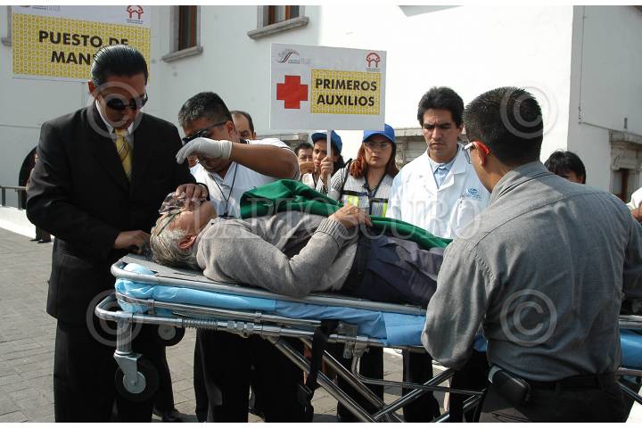 MEXICO D.F. 30MAYO2005.- Como parte del programa de Protección Civil, empleados de la Segob realizaron un simulacro de sismo en el patio de la dependencia. FOTO: Germán Romero/CUARTOSCURO.COM