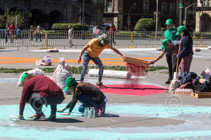 Continúa la elaboración de una mega alfombra por parte de la asociación civil "La octava noche de Uriangato"