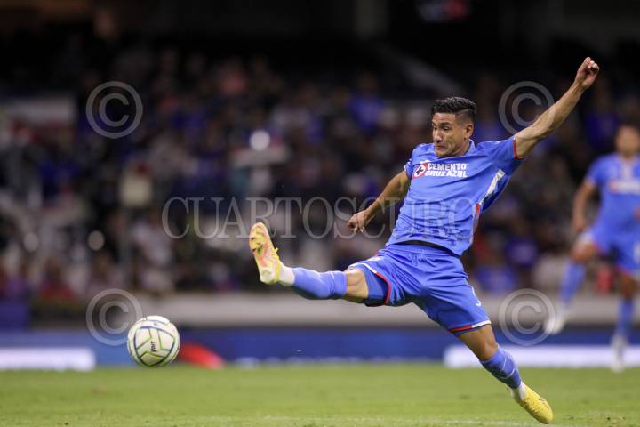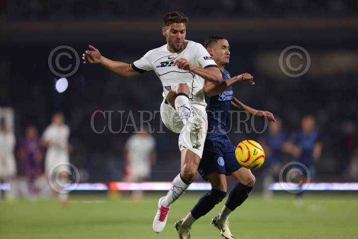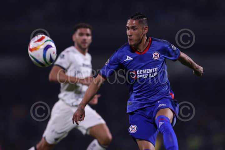 CIUDAD DE MÉXICO, 09MAYO2024. Uriel Antuna de la Máquina Celeste durante el partido de fútbol de ida, Pumas vs Cruz Azul correspondiente a la fase de cuartos de final del Torneo Clausura 2024 de Liga BBVA MX, en el Estadio Olímpico Universitario. FOTO: EDGAR NEGRETE LIRA/CUARTOSCURO.COM