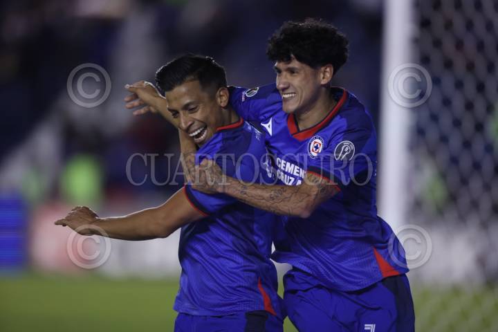 CIUDAD DE MÉXICO, 30ENERO2024. Ángel Sepúlveda y Uriel Antuna en festejo durante el partido de fútbol Cruz Azul vs Tijuana correspondiente a la jornada 4 del Torneo Clausura 2024 de Liga BBVA MX, en el Estadio Ciudad de los Deportes. FOTO: EDGAR NEGRETE LIRA/CUARTOSCURO.COM