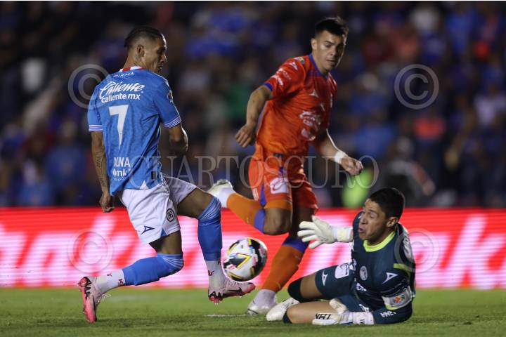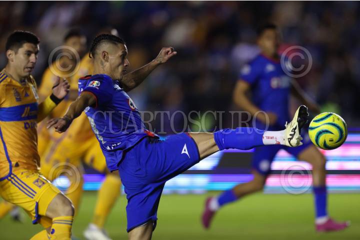 Los jugadores Uriel Antuna (Cruz Azul) y Samir (Tigres) disputaron el balón durante el partido de la Jornada 5 Clausura 2023 en el Estadio Azteca