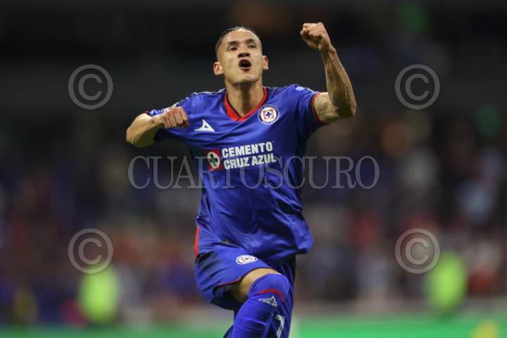 CIUDAD DE MÉXICO, 23MAYO2024. El jugador de la Máquina Celeste, Uriel Antuna Tras anotar un gol de penal durante el partido de fútbol Cruz Azul vs América correspondiente a la final de ida del Torneo Clausura 2024 de la Liga BBVA MX, en el Estadio Ciudad de los Deportes. FOTO: EDGAR NEGRETE LIRA/CUARTOSCURO.COM