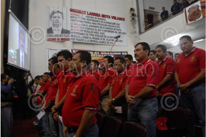 MÉXICO D.F 24MAYO2007.- Decenas de integrantes del sindicato nacional de mineros, realizaron una marcha para demostrar su descontento por la campaña mediatica en contra de Napoleón Gómez Urritia, lider minero.Los manifestantes realizarón un mitin en frente de la secretaria de gobernación y de televisa Chapultepec. FOTO: GUILLERMO MARTÍNEZ/CUARTOSCURO.COM