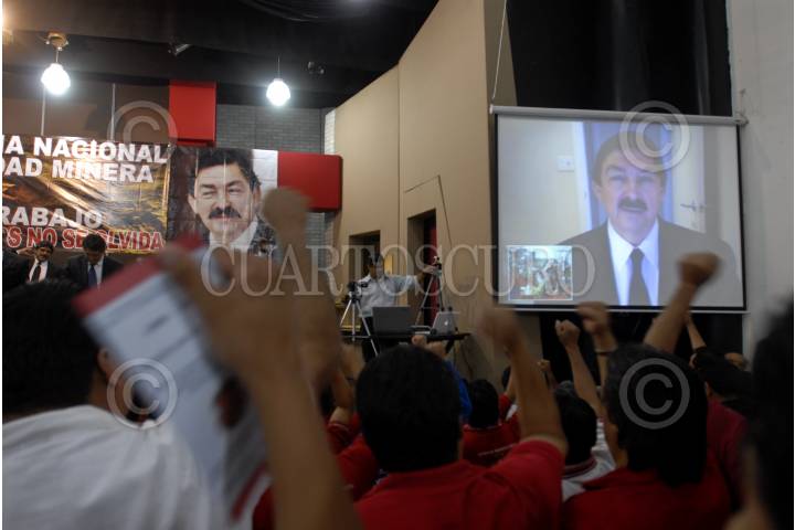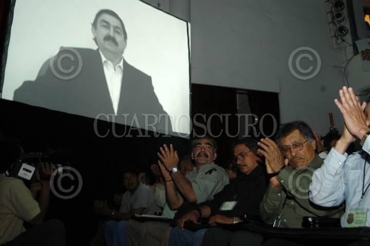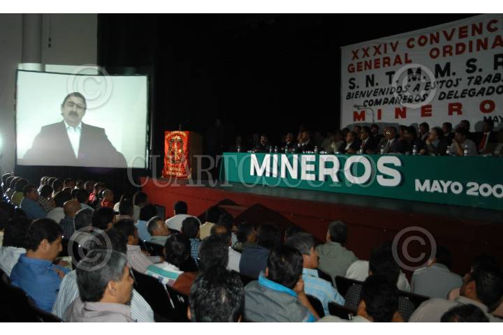MÈXICO,D.F. 02MAYO2006.- Durante el evento de inauguración de la XXXIV Convencion Nacioanl del Sindicato Minero, fue proyectado un video-comunicado del lider minero Napaleón Gomez Urrutia. FOTO: Germán Romero/CUARTOSCURO.COM