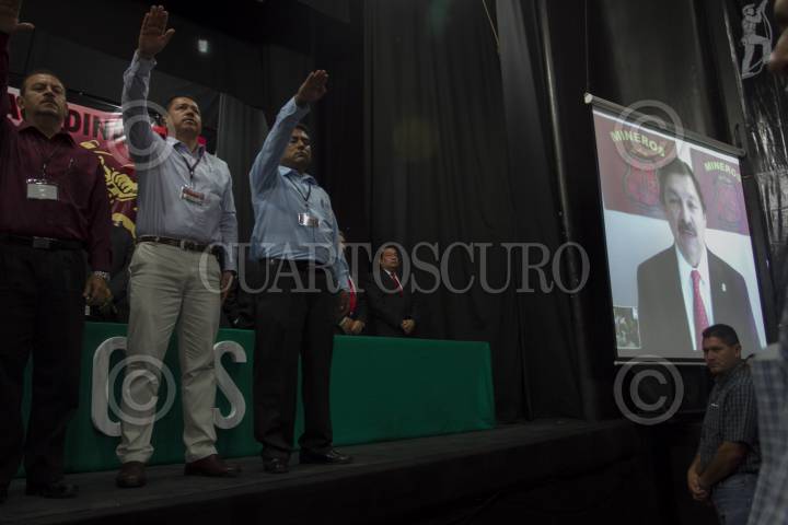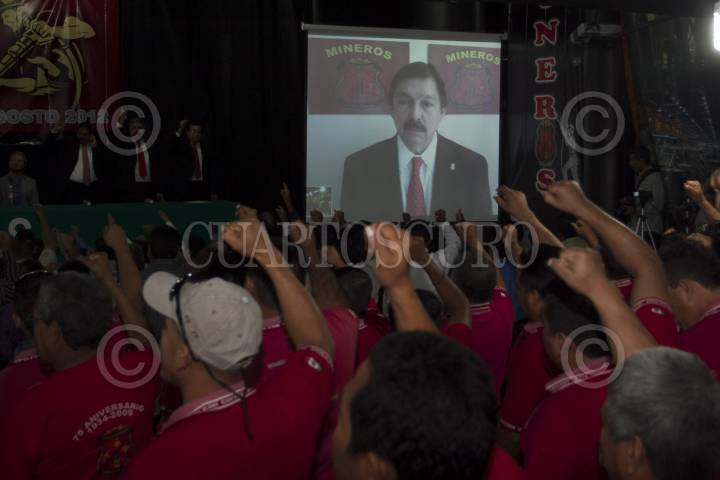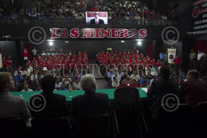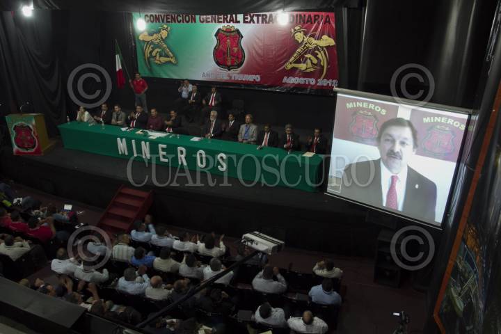 MÉXICO D.F., 01AGOSTO2012.- La imagen de Napoleón Gómez Urrutia, Secretario General del Sindicato Nacional de Mineros vista en una pantalla durante la Sesión Inaugural de la Convención General Extraordinaria del Sindicato Nacional de Mineros. FOTO: GUILLERMO PEREA /CUARTOSCURO.COM