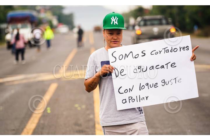 URUAPAN, MICHOACÁN. 21JUNIO2024. Ante la falta de trabajo, cortadores de aguacate salieron a las calles de Uruapan a solicitar apoyo económico a la población, debido a la suspensión de exportación del llamado oro verde hacia Estados Unidos. Los propietarios de las huertas disminuyeron las contrataciones para realizar trabajo de campo. FOTO: JUAN JOSÉ ESTRADA SERAFÍN /CUARTOSCURO.COM