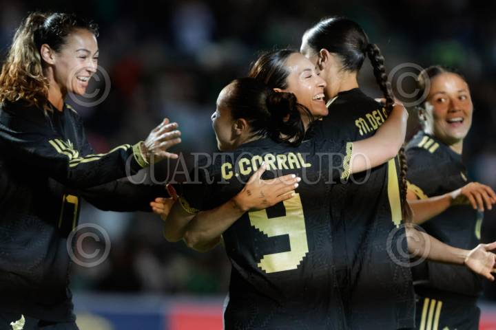 PUEBLA, PUEBLA, 30MAYO2025.- Jugadoras de México en festejo durante partido de preparación entre la Selección Nacional de México Femenil y la Selección de Uruguay Femenil, celebrado en el estadio universitario de la BUAP. Marcador final: México (2)- (2) Uruguay. FOTO: MIREYA NOVO/ CUARTOSCURO.COM