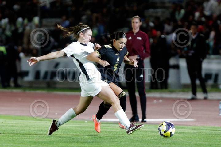 PUEBLA, PUEBLA, 30MAYO2025.- Anika Elia Rodriguez y Paola Fitipaldi durante partido de preparación entre la Selección Nacional de México Femenil y la Selección de Uruguay Femenil, celebrado en el estadio universitario de la BUAP. Marcador final: México (2)- (2) Uruguay. FOTO: MIREYA NOVO/ CUARTOSCURO.COM