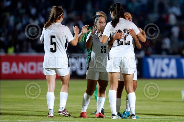 PUEBLA, PUEBLA, 30MAYO2025.- Jugadoras de Uruguay en festejo durante partido de preparación entre la Selección Nacional de México Femenil y la Selección de Uruguay Femenil, celebrado en el estadio universitario de la BUAP. Marcador final: México (2)- (2) Uruguay. FOTO: MIREYA NOVO/ CUARTOSCURO.COM