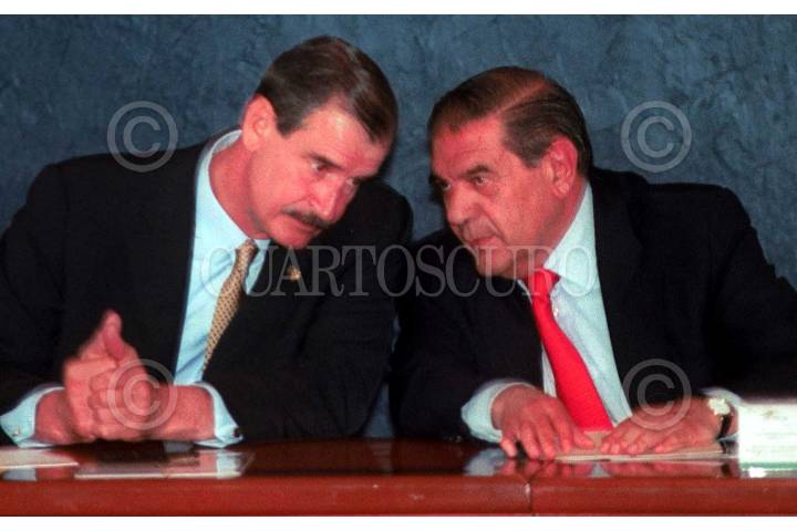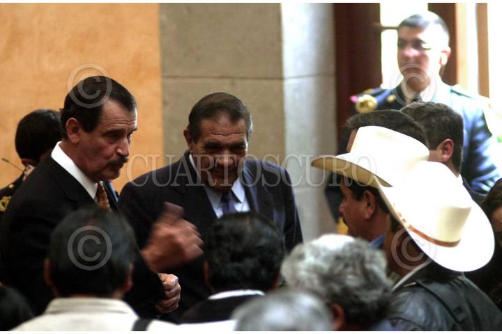 El presidente Vicente Fox, acompañado de Javier Usabiaga, secretario de Agricultura, presentarón ante líderes campesinos, gobernadores y legisladores el Arranque de los Trabajos para Alcanzar un Acuerdo Nacional para el Campo. FOTO: Oswaldo Ramírez/CUARTOSCURO.COM