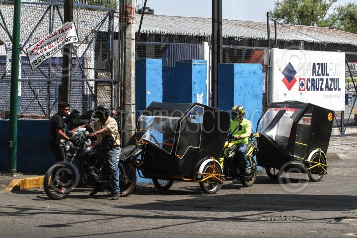 Mototaxistas durante su base frente a la estación Olivos de la Línea 12.