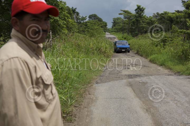 CENTLA, TABASCO, 10OCTUBRE2013.- Varios tramos que comprende la carretera interestatal que conducen al municipio de Jonuta, al menos 60 kilómetros, se encuentran demasiado peligrosos debido a que el material de la carpeta asfáltica son deslavadas por las lluvias constantes y las filtraciones del río Usumacinta que a empezado a desbordarse. FOTO: MARCO POLO GUZMÁN HERNÁNDEZ/CUARTOSCURO.COM