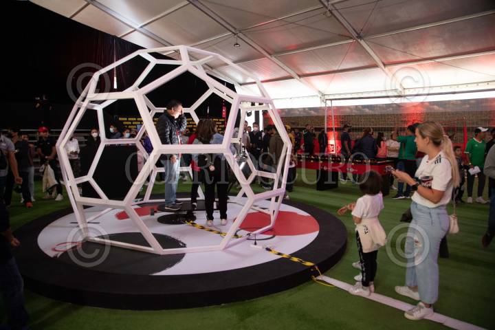 Aficionados durante las actividades por la inauguración del Tour de la Copa Mundial de la FIFA en la Utopía Meyehualco en Iztapalapa.