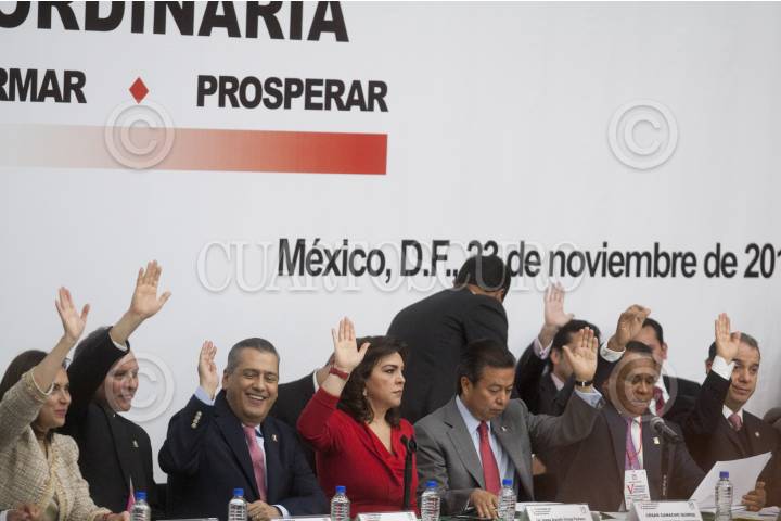 MÉXICO, D.F., 23NOVIEMBRE2013.- César Camacho Quiroz, líder nacional del tricolor, encabezó los trabajos de la sesión de trabajo del V Consejo Político Nacional en la sede nacional del PRI. FOTO: MOISÉS PABLO /CUARTOSCURO.COM