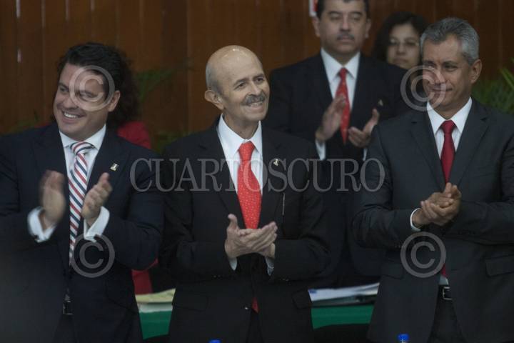 MÉXICO, D.F., 23NOVIEMBRE2013.- El gobernador de Michoacán Fausto Vallejo acudió a los trabajos del V Consejo Político Nacional en la sede nacional del PRI. Recientemente partidos de la oposición pidieron la desaparición de poderes por los altos niveles de violencia que se vive en aquel estado. Lo flanquean en la imagen los gobernador de Jalisco Jorge Aristoteles Sandoval y Colima Mario Anguiano Moreno. FOTO: MOISÉS PABLO /CUARTOSCURO.COM