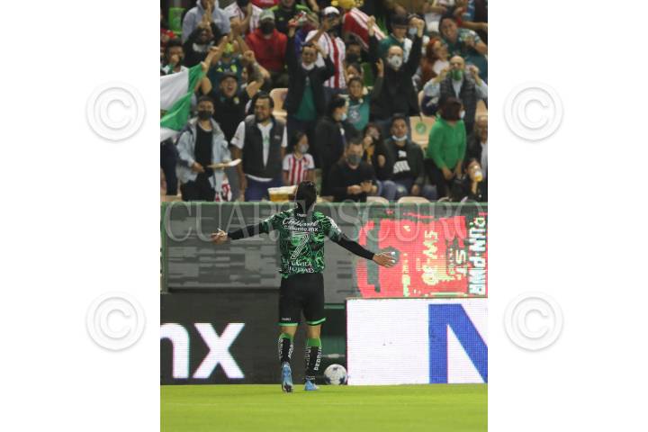 Víctor Dávila, delantero del León, celebra el triunfo frente a las Chivas, en partido correspondiente a la Jornada 6 Liga MX Grita México C22.