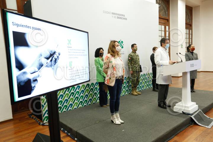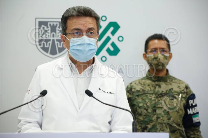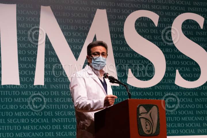 Víctor Hugo Borja, director de Prestaciones Médicas del IMSS, durante el anunció de la aplicación en contra del Covid-19 a personas de la tercera de edad en tres alcaldías de la capital.