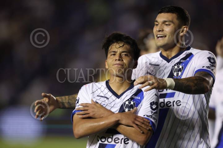 CIUDAD DE MÉXICO, 06ABRIL2024. Víctor López de rayados festeja su anotación durante el partido de fútbol Cruz Azul vs Monterrey correspondiente a la jornada 14 del Torneo Clausura 2024 de Liga BBVA MX, en el Estadio Ciudad de los Deportes. FOTO: EDGAR NEGRETE LIRA/CUARTOSCURO.COM