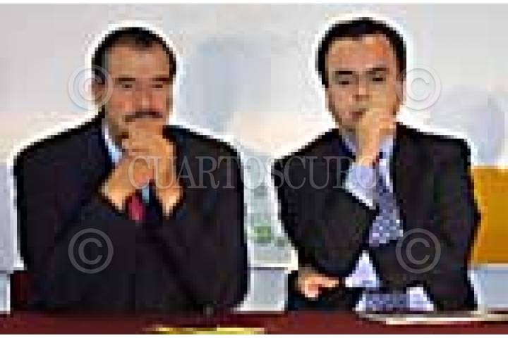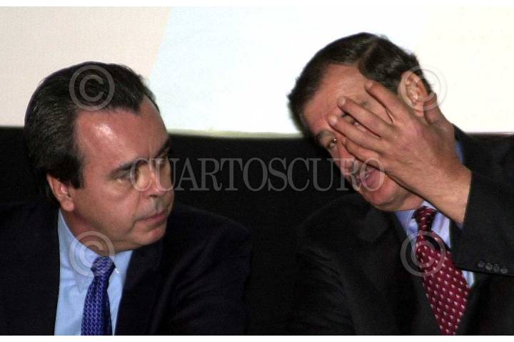 Victor Manuel Borras, director general del Instituto del Fondo Nacional de la Vivienda para los Trabajadores (INFONAVIT), y Vicente Fox, presidente de la República, durante la 83 Asamblea general de ese instituto. FOTO: Juan Pablo Zamora/CUARTOSCURO.COM