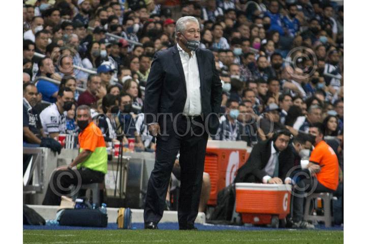 Víctor Manuel Vucetich, Director Técnico de los Rayados del Monterrey, durante el encuentro ante Santos, en el estadio BBVA, partido correspondiente a la vuelta en cuartos de final de la Clausura 2023.