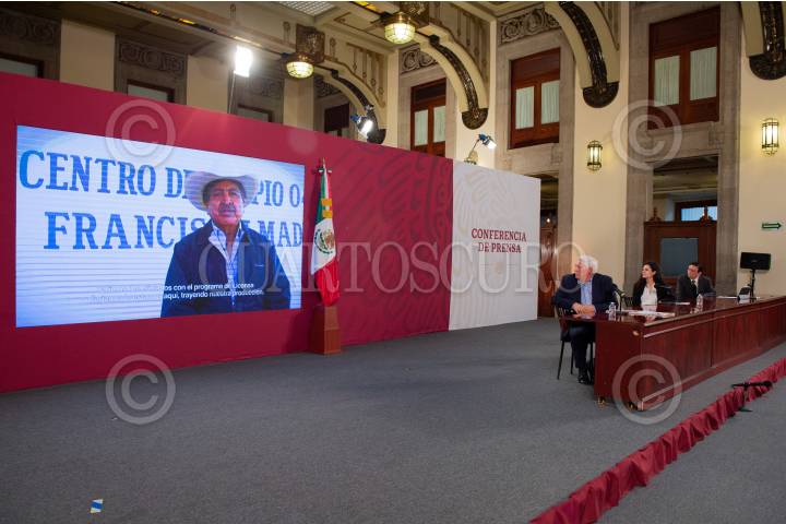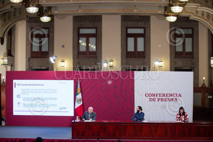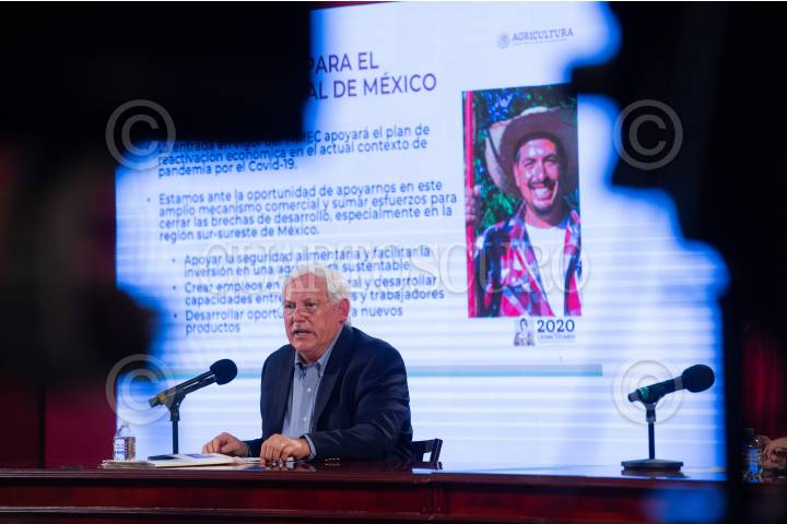 Victor Villalobos, titular de la SADER, durante las conferencias del Bienestar.