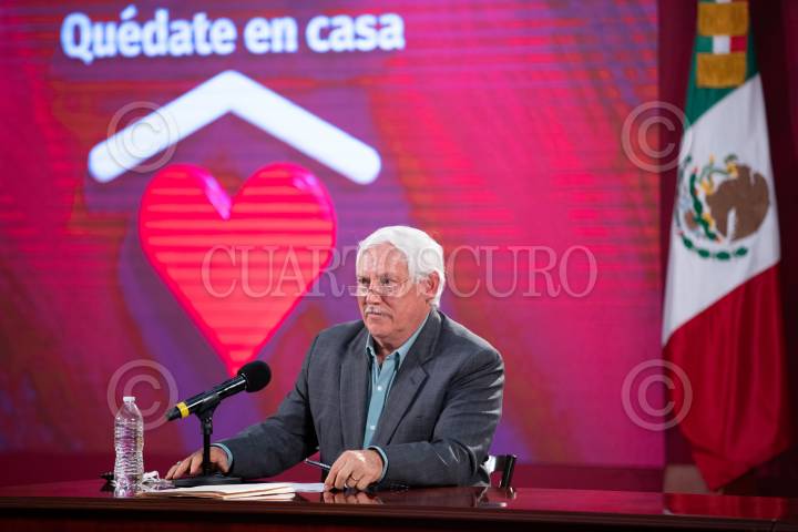 Víctor Manuel Villalobos Arámbula, secretario de Agricultura y Desarrollo Rural (SADER), durante la conferencia.