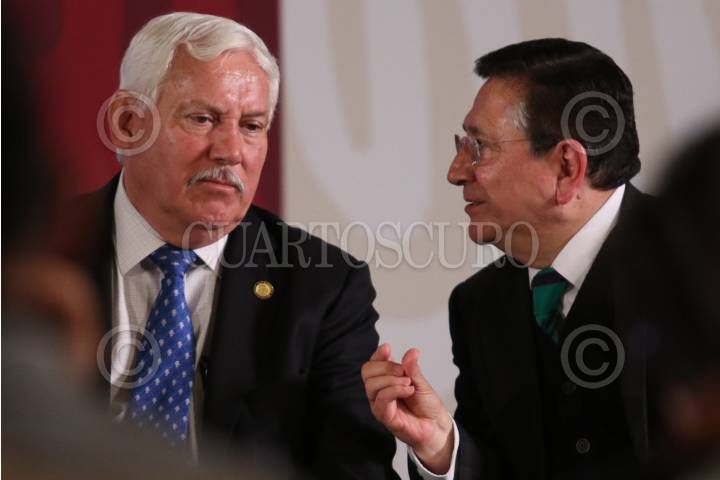 CIUDAD DE MÉXICO, 30SEPTIEMBRE2019.- Ignacio Ovalle Fernández, director general del organismo Seguridad Alimentaria Mexicana (Segalmex), y Ricardo Sheffield, titular de Profeco, durante la conferencia matutina. FOTO: GALO CAÑAS /CUARTOSCURO.COM