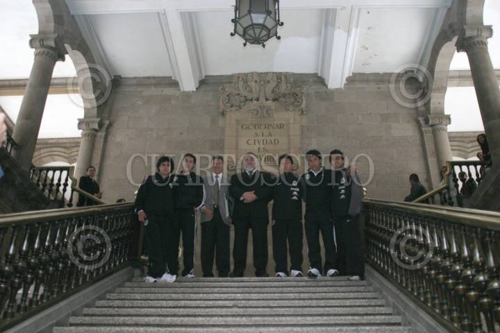 MEXICO, D.F. 22NOVIEMBRE2005.- Alejandro Encinas, jefe de gobierno de la ciudad de México se tomó la foto del recuerdo con Carlos Silva, Pedro Valverde, César Villaluz, Enrique Esqueda integrantes de la Sub 17 y Jesús Ramírez, entrenador. FOTO: Nelly Salas/CUARTOSCURO.COM