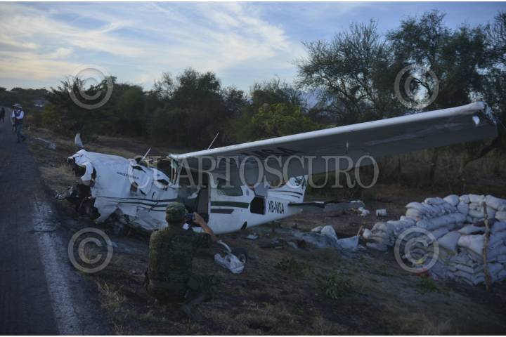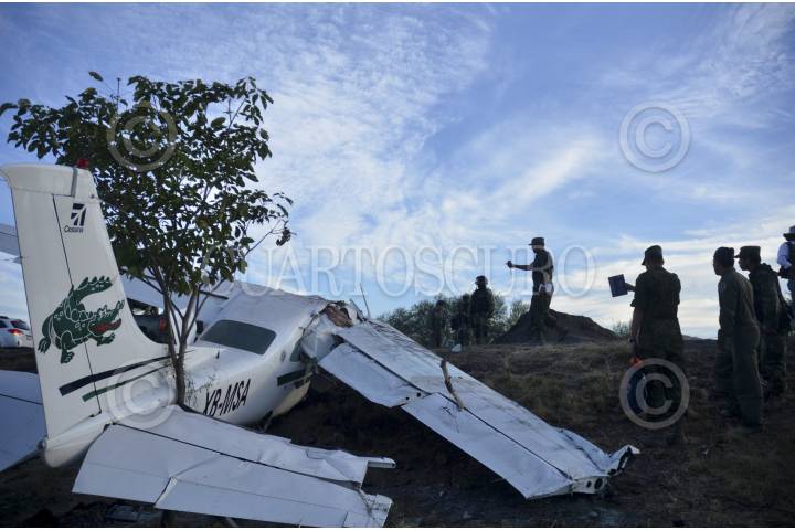 LA HUACANA, MICHOACÁN, 05ENERO2014.- El avión en el que se accidentó el Coordinador General de las Autodefensas en Michoacán, José Manuel Mireles Valverde, sufrió un percance la tarde del día de ayer, el avión cayó muy cerca de la barricada de la comunidad del Chauz, en la que resultaron heridas 4 personas y murió el copiloto de esta, Mireles resulto con heridas leves y se encuentra estable. FOTO: ALAN ORTEGA /CUARTOSCURO.COM