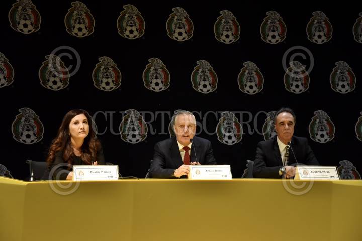 cIUDAD DE MÉXICO, 27FEBRERO2019.- Beatriz Ramos, directora de Comunicación e Imagen de la Federación Mexicana de Futbol, y Arturo Brizio Carter, presidente de la Comisión de Arbitraje, ofrecieron conferencia de prensa para hablar del trabajo realizado con el VAR en los partidos del futbol nacional. FOTO: ISAAC ESQUIVEL /CUARTOSCURO.COM