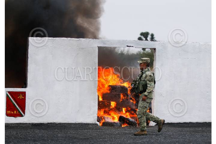 ESCOBEDO, NUEVO LEÓN, 31ENERO2025.- Soldados del ejército mexicano llevan a cabo incineración de droga dentro de las instalaciones de la VII Zona Militar, donde fueron destruidos 790 kilos de diferentes drogas ilícitas, como resultado de diversos operativos realizados por la Secretaría de la Defensa en en conjunto con la Fiscalía General de la República del Estado de Nuevo León. FOTO: GABRIELA PÉREZ MONTIEL / CUARTOSCURO.COM