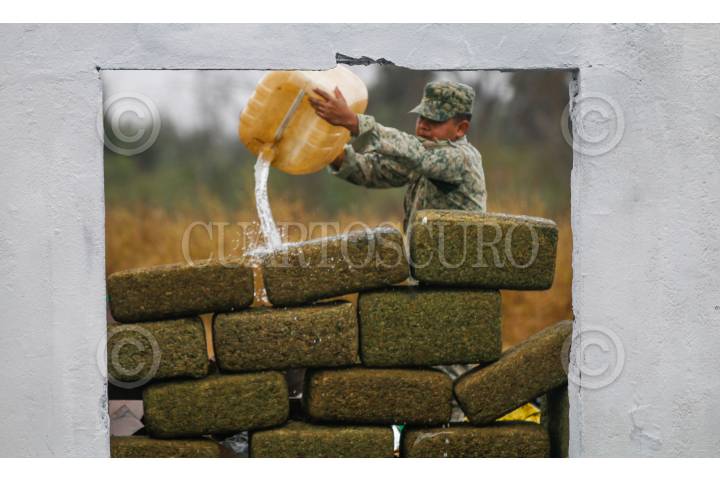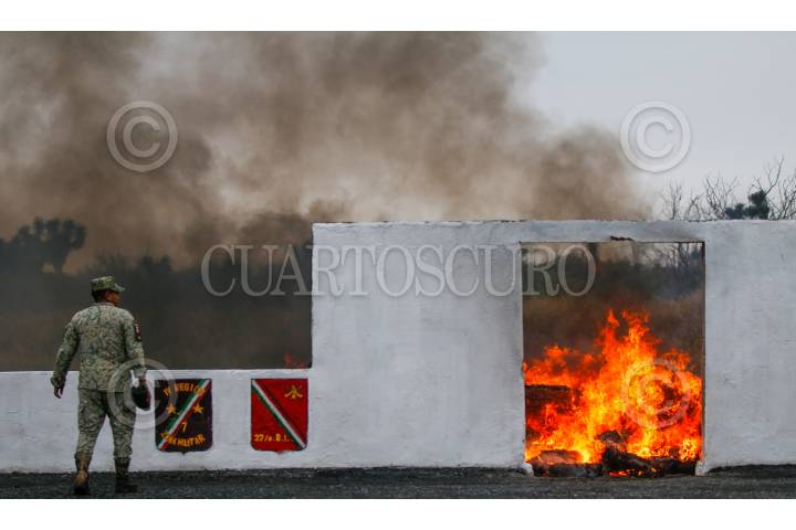 APODACA, NUEVO LEÓN, 06DICIEMBRE024.- La Fiscalía General de la República (FGR) a través de la FECOR y la SEDENA, incinera 957 kilos, 212 gramos, 700 miligramos de narcóticos en las inmediaciones de la VII Zona Militar en Nuevo León, relacionadas con 17 carpetas de investigación. FOTO: GABRIELA PÉREZ MONTIEL / CUARTOSCURO.COM