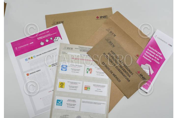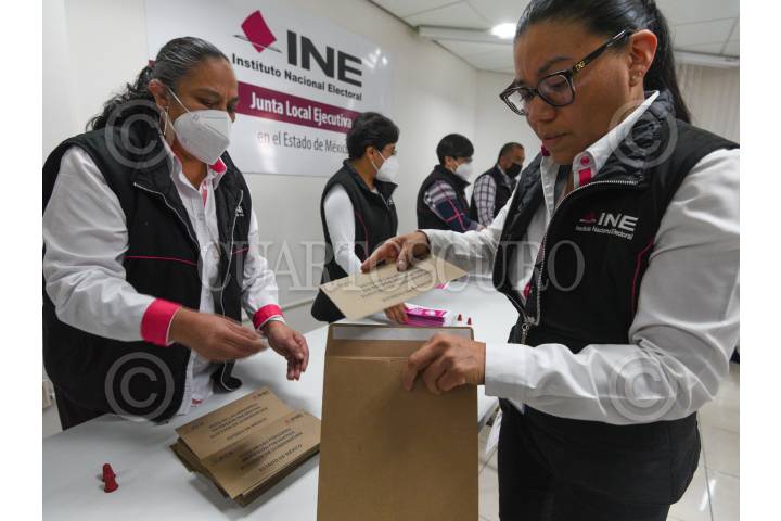 Ensobretado de las boletas electorales para el Voto de Personas en Prisión Preventiva y acotó Anticipado en la Junta Local del INE en el Estado de México, encabezado por Joaquín Rubio Sánchez Vocal Ejecutivo.