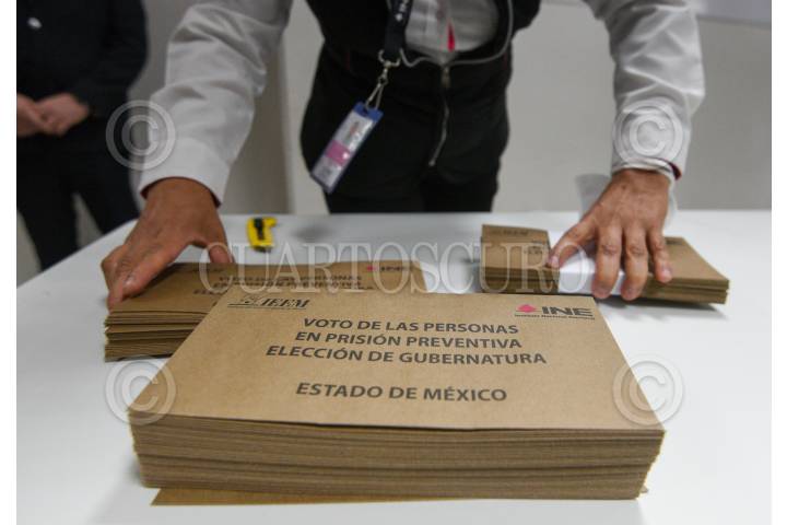 Ensobretado de las boletas electorales para el Voto de Personas en Prisión Preventiva y acotó Anticipado en la Junta Local del INE en el Estado de México.